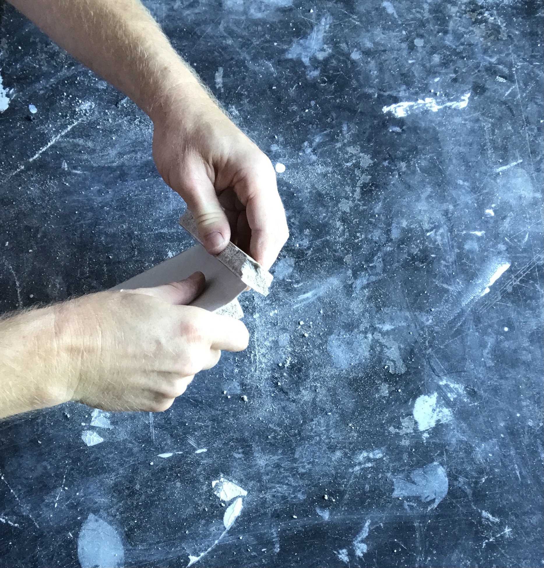 Burn the outside edges. The goal is to ramp from the wall to the patch. We’re just trying to cover the paper now.