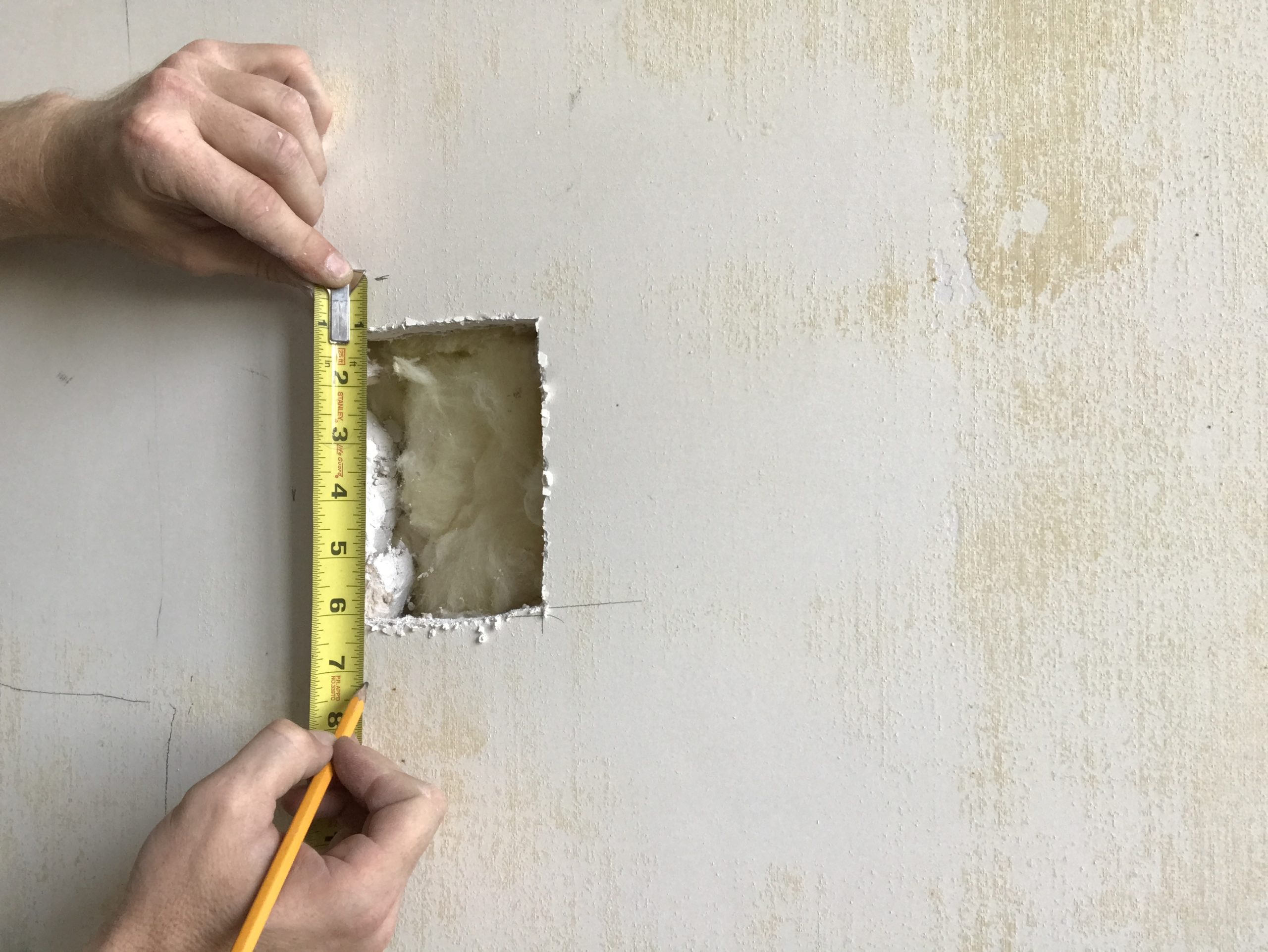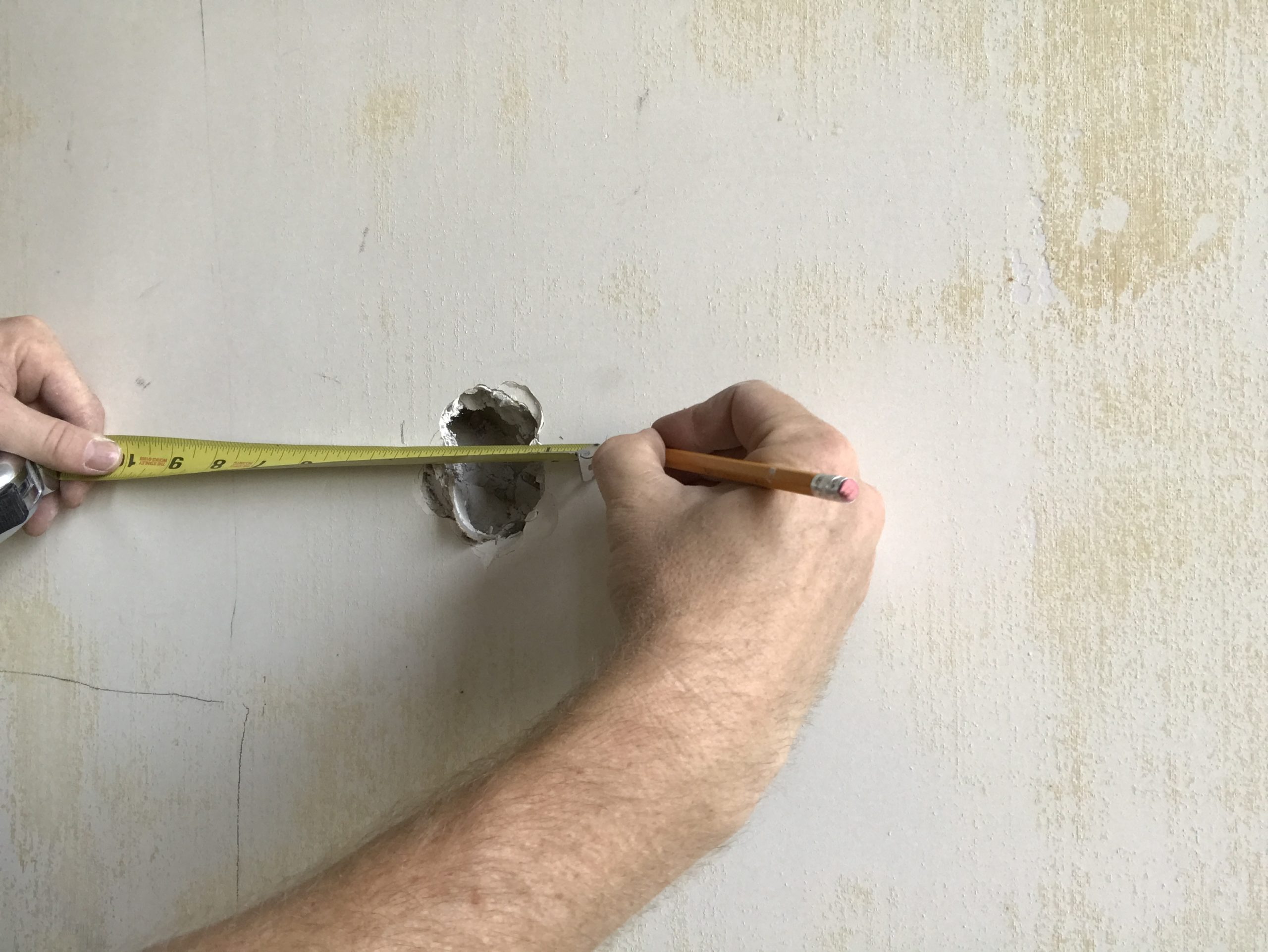 Measuring for the width of the California patch. About 1” past each side of the hole.