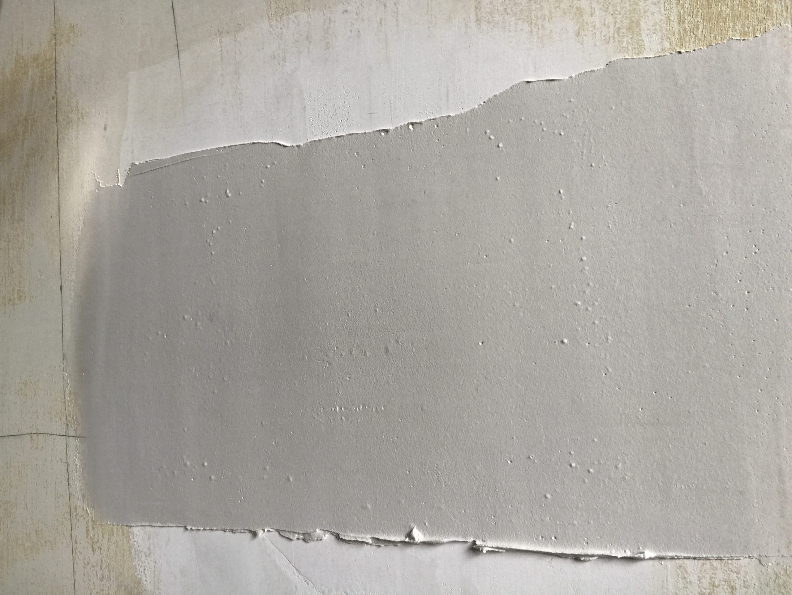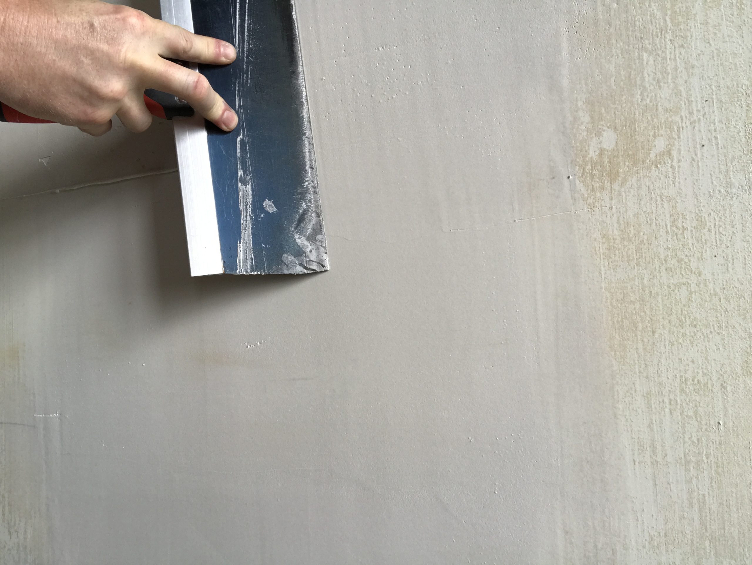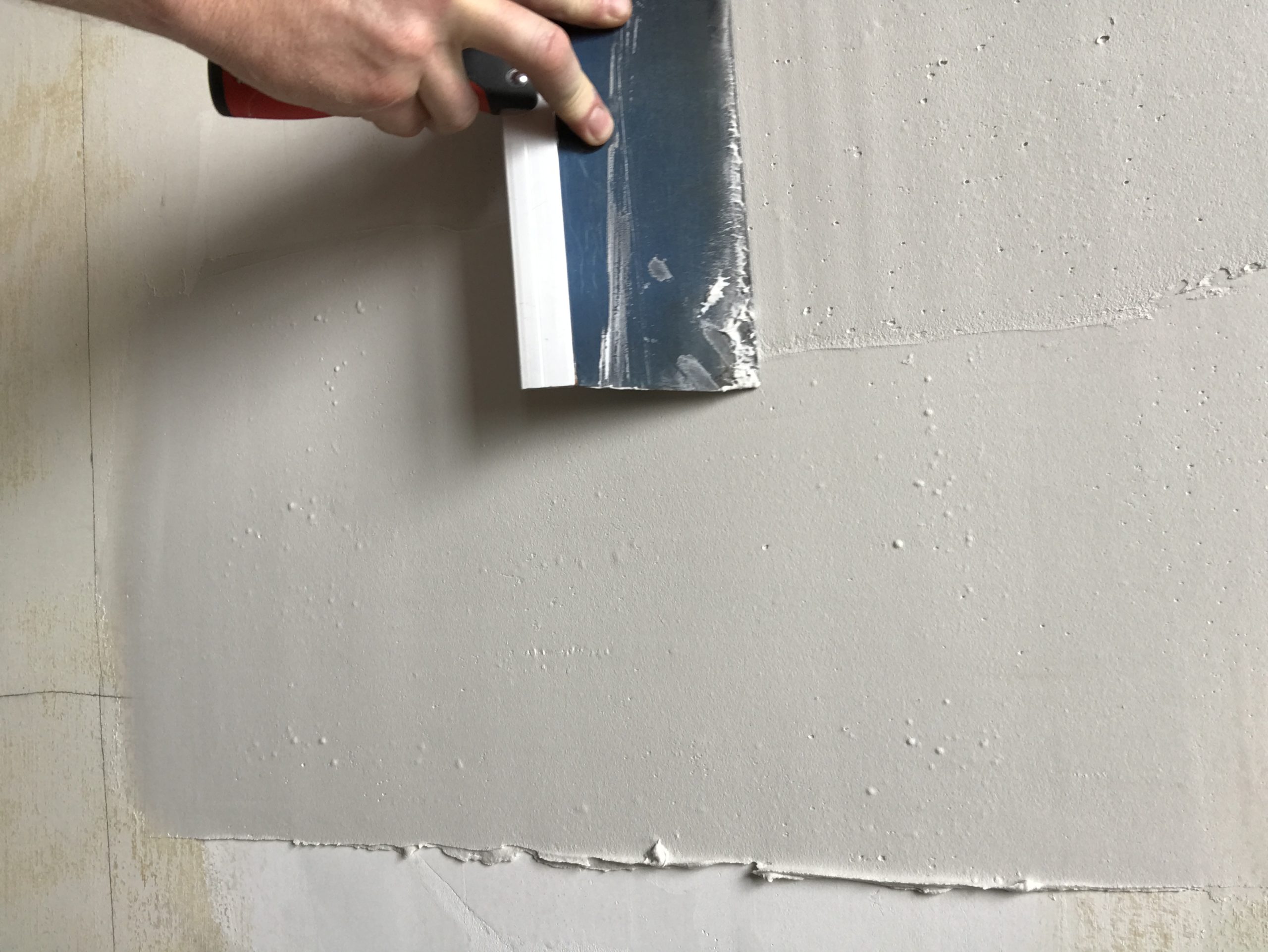 Start the first coat with a 6” knife. Since the paper is so flat, it doesn’t take much to skim it out.