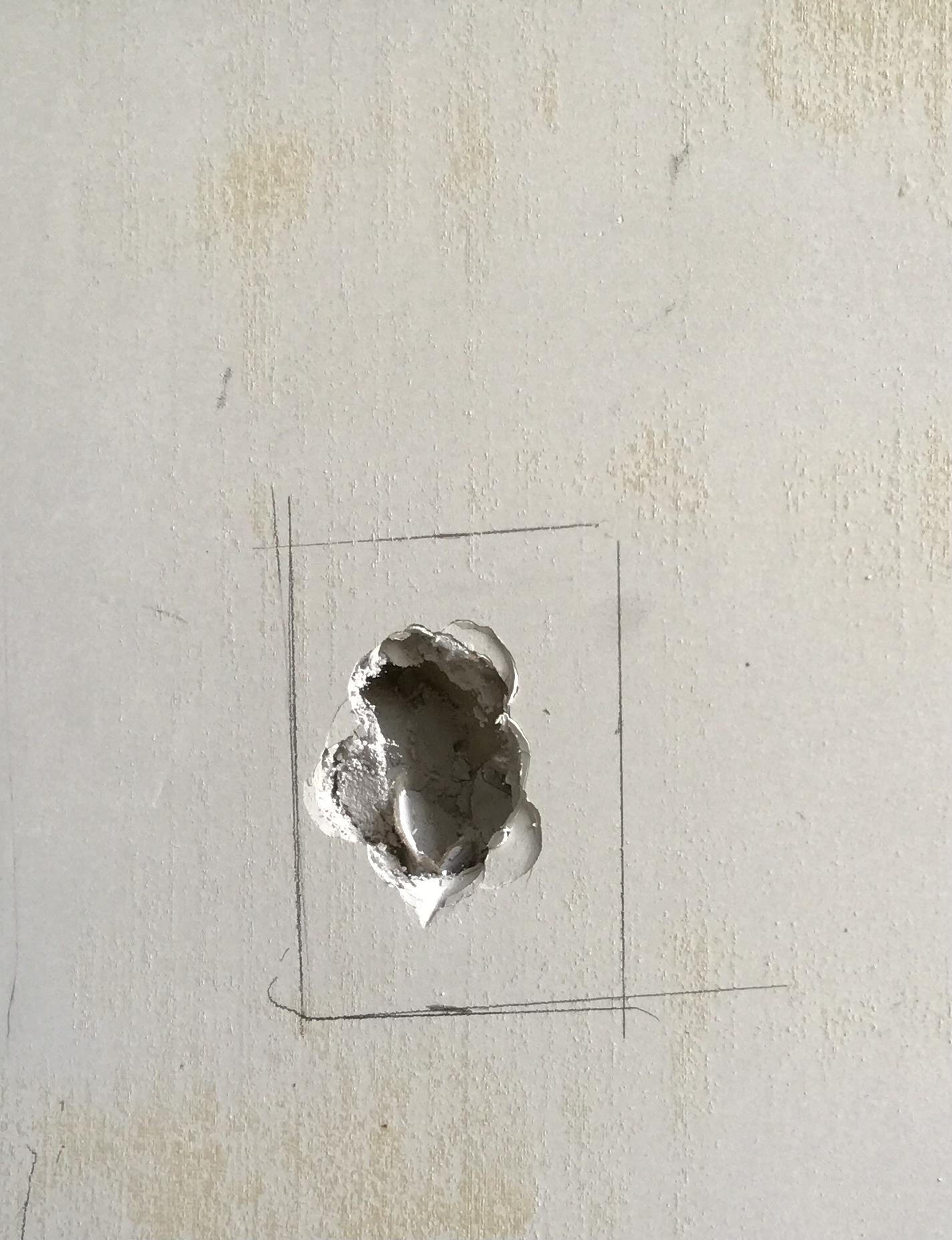 In case you’re uninitiated, a California patch is a way to repair a hole in drywall without any backer to screw into.