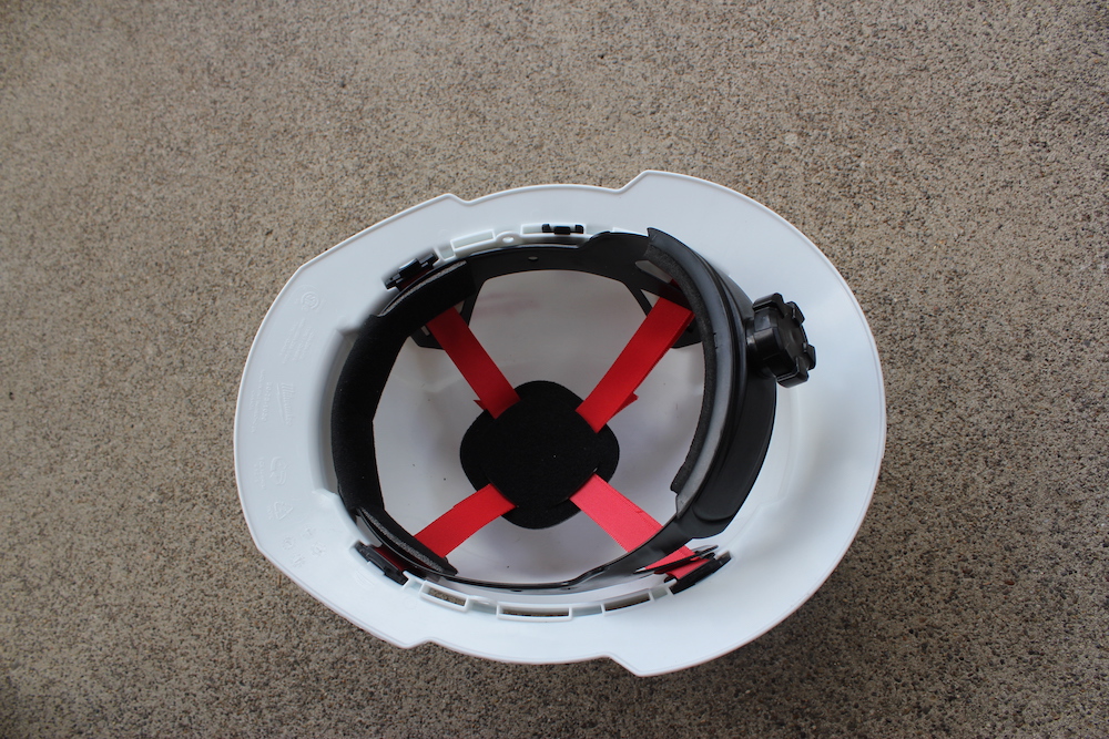 The linings of Milwaukee hardhats, on the other hand, have a very comfortable headband, with padded moisture-wicking areas on the front, rear and top. A four-point ratcheting suspension system makes it easy to snug up that headband, since a hardhat is much more useful if it actually stays on your head.