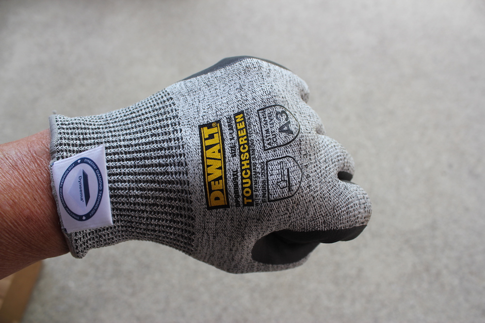DeWalt’s cut resistant gloves, product # DPGD809, are also touchscreen capable. They have a cut level rating of A3, and DeWalt says they’re intended uses include construction, automotive, metal fabrication and glass manufacturing. They’re available in size L and XL; I had the size XL, and while I could get them on, they were snug around my fingers.