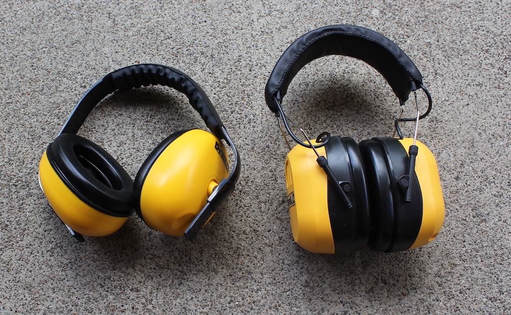 DeWalt sent two sets of muffs: The Interrupter (L) and the Premium Bluetooth muffs.