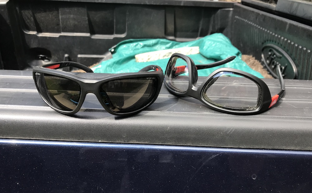 I tried both the clear and tinted versions (yes – we got a sunny day!) while doing various yard work. I had them on while doing some hammer drilling, while cutting up a fallen apple tree, and while doing some more weedwhacking. I especially appreciate the extra protection when using the string trimmer, because I routinely get pelted with chunks of various debris every time I’m out there. The Milwaukee safety glasses have a very sturdy feel, while still being lightweight and comfortable. And again – pretty sharp looking!