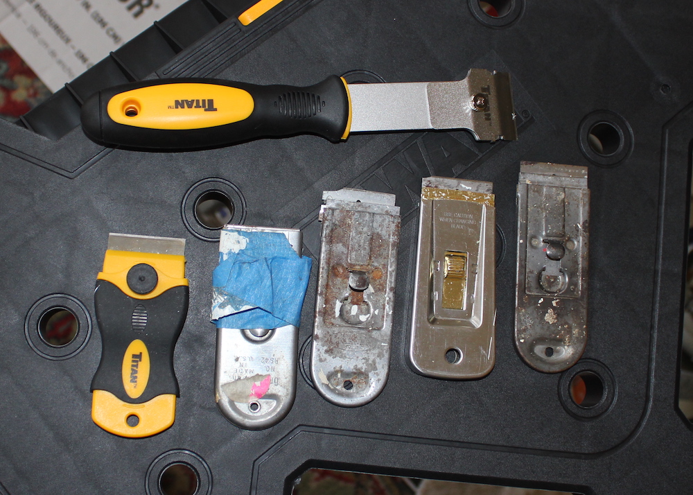 The Titan Tools razor scrapers, ready to help me clean up my act.