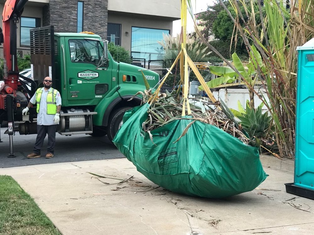 In promotional photos the Bagster looks like a perfect rectangle. In reality, ours looked like giant, green tacos once they were hoisted into the air. The driver picking up ours carefully lifted the Bagsters and expertly navigated them into the truck bed (which already had a couple other Bagsters in it. In a matter of minutes, they were off our driveway and on their way to bag heaven, or maybe just the dump.