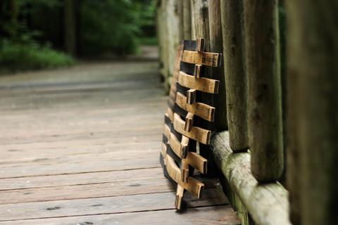 Woodworker Chris Cruise carrying one of his bourbon barrel flags. Photo – Cruise Customs