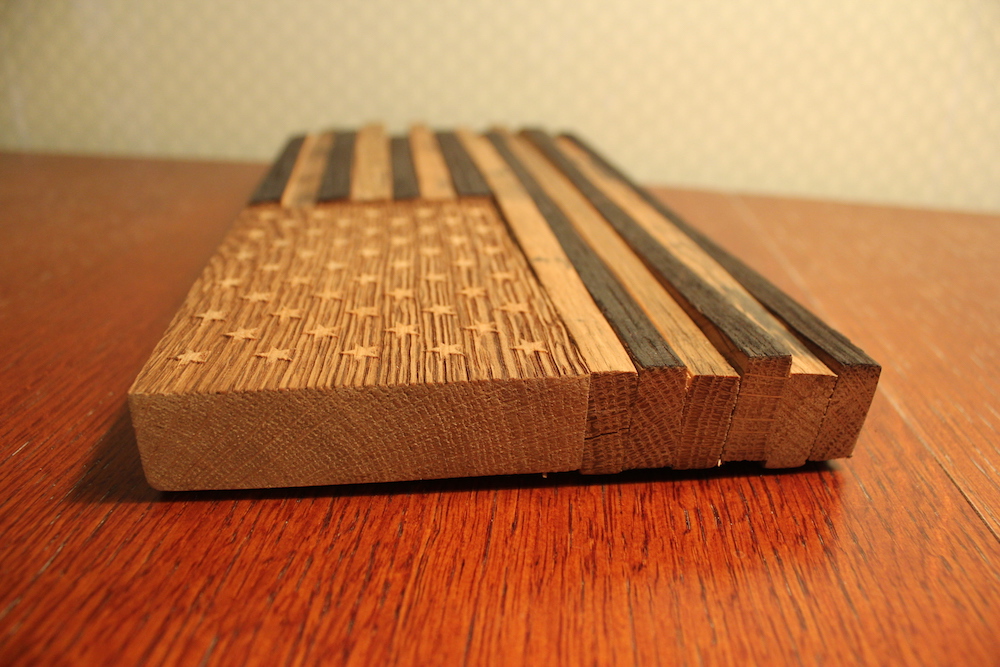 Unlike products that come off an assembly line, every Cruise Customs bourbon barrel flag is unique, with its own character. Variations in grain, coloration and thickness of each stave mean no two flags are exactly alike. I love the texture and three-dimensional look of the flags, with their curved stripes and raised stars.