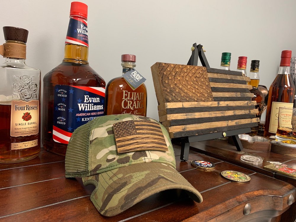 Chris and the guys also have a few custom accessories available. Current offerings include bourbon barrel wood smoking chips, handcrafted American flag coasters, and a bourbon barrel candle. A camo hat with a bourbon barrel flag patch (also available separately) is listed, but currently sold out (in 24 hours!). A new batch should be ready by the end of January – get in line. Behind me!