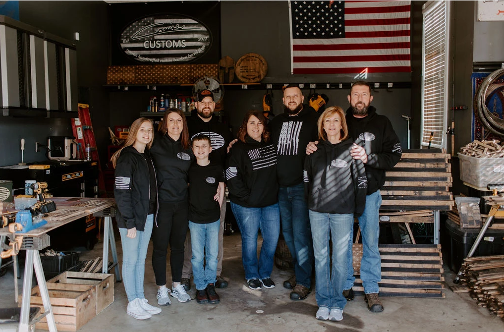 During this period, he decided to try his hand at woodworking. One of his early projects was a homemade Christmas gift. Taking staves from used bourbon barrels, Chris concocted a unique item – a large American flag display. It was a perfect project to serve as both a nod to his military service, and a tribute to his wife’s home state. He also enjoyed the time spent in the garage with his son, and found the project therapeutic.